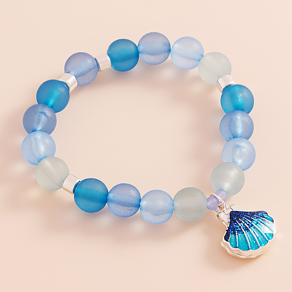 Details • Size : 0.3" H • Charm Size : 0.75" X 0.75" • Stretchable • Inspired by serene coastal vibes, this bracelet features smooth ocean-toned beads and a delicate shell charm that adds a touch of seaside elegance. The stretchable band ensures a comfortable fit, making it the perfect accessory for beach days or relaxed everyday wear. • Lead and Nickel Compliant