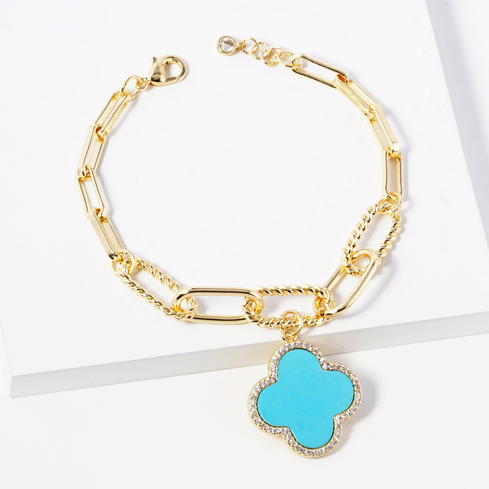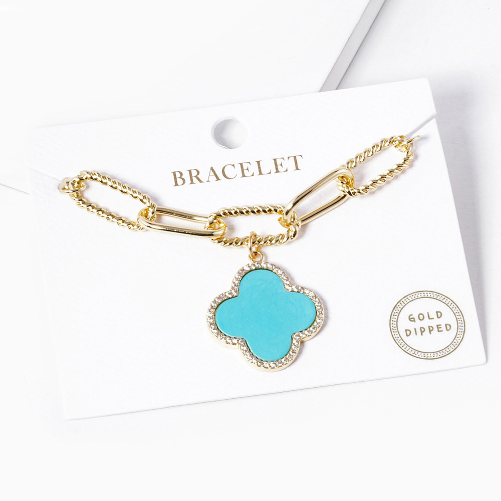 Gold Dipped Quatrefoil Charm Paperclip Bracelet