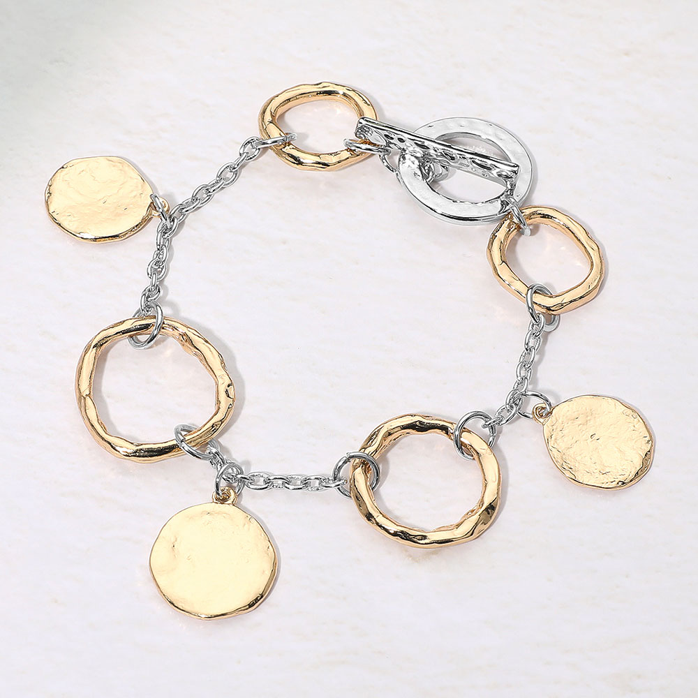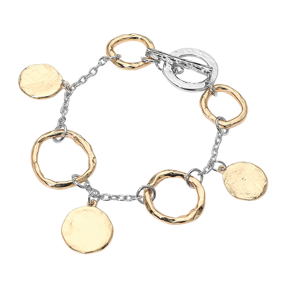 Hammered Metal Disc Charm Ring Link Bracelet