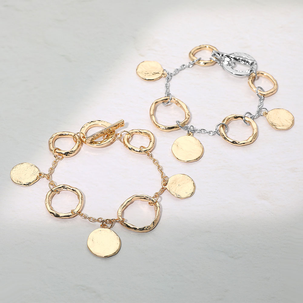 Hammered Metal Disc Charm Ring Link Bracelet Hammered Metal Disc Charm Ring Link Bracelet Hammered Metal Disc Charm Ring Link Bracelet