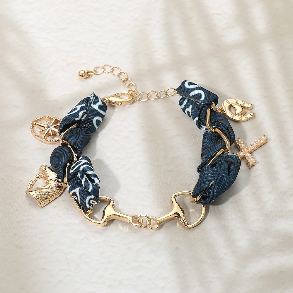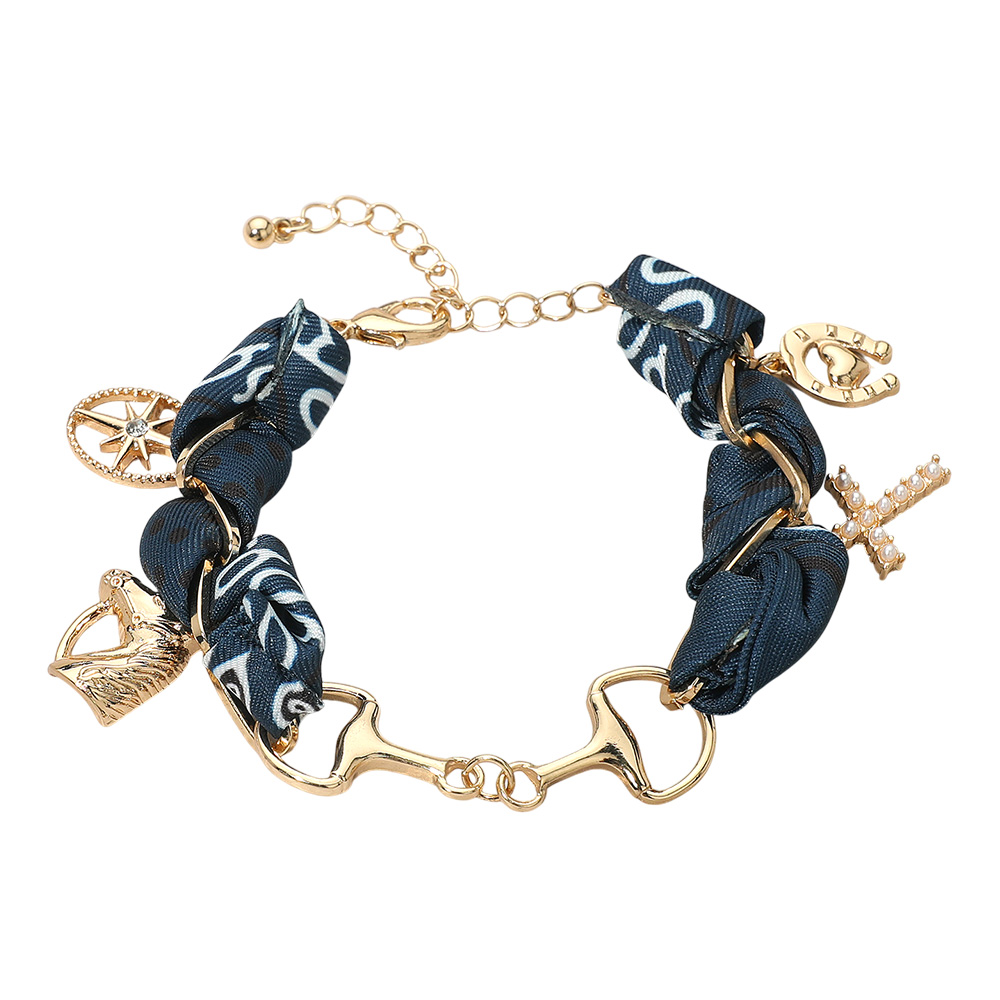 Horsebit Link Center Horse Horseshoe Pearl Cross Starburst Charm Station Fabric Bracelet