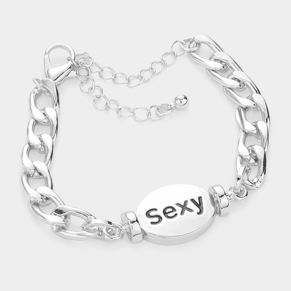 SEXY Metal Oval Message Charm Bracelet