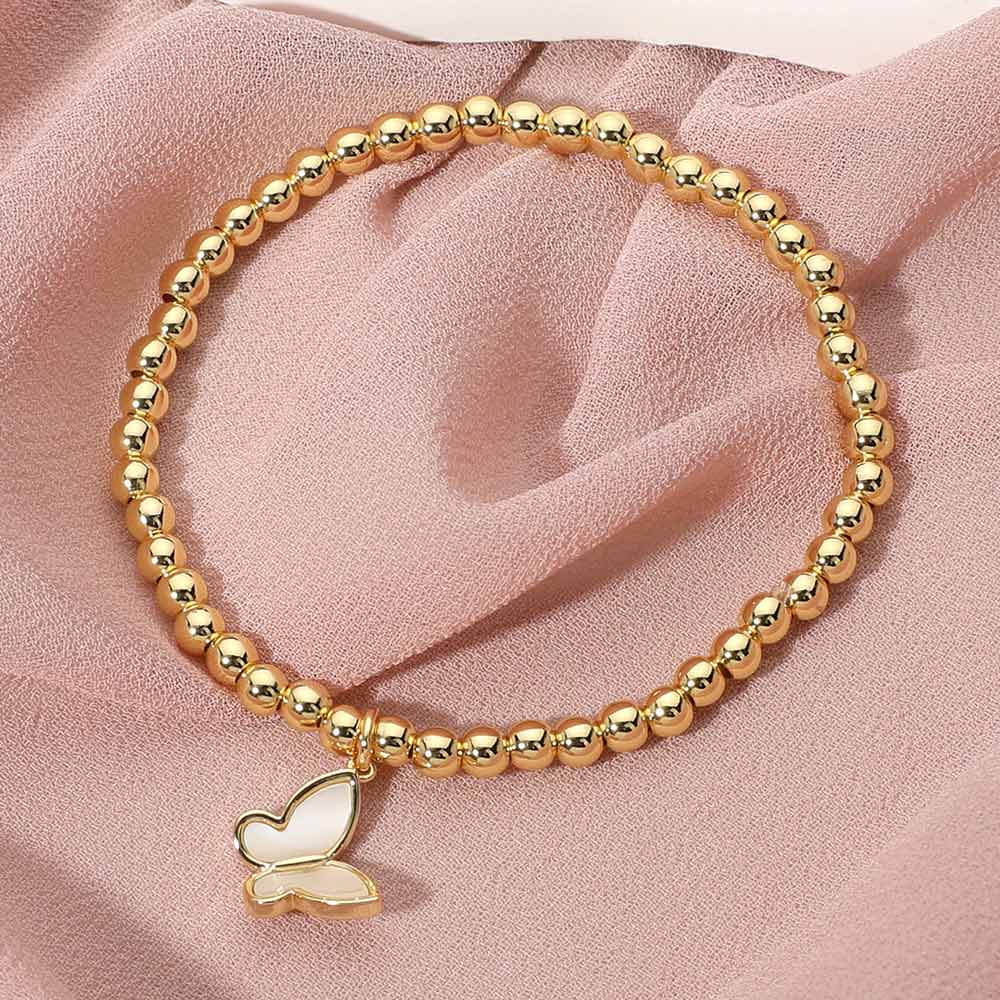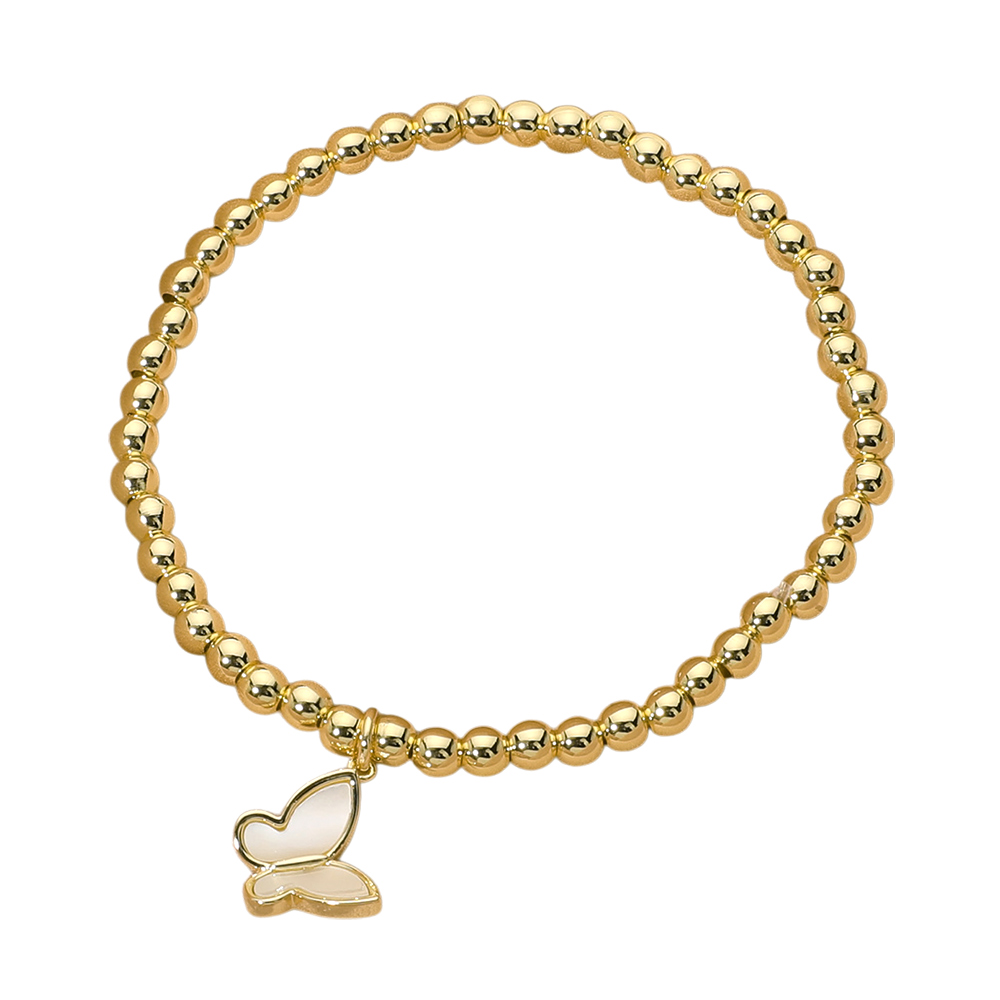 SECRET BOX_Stone Paved Butterfly Brass Ball Beaded Stretch Bracelet