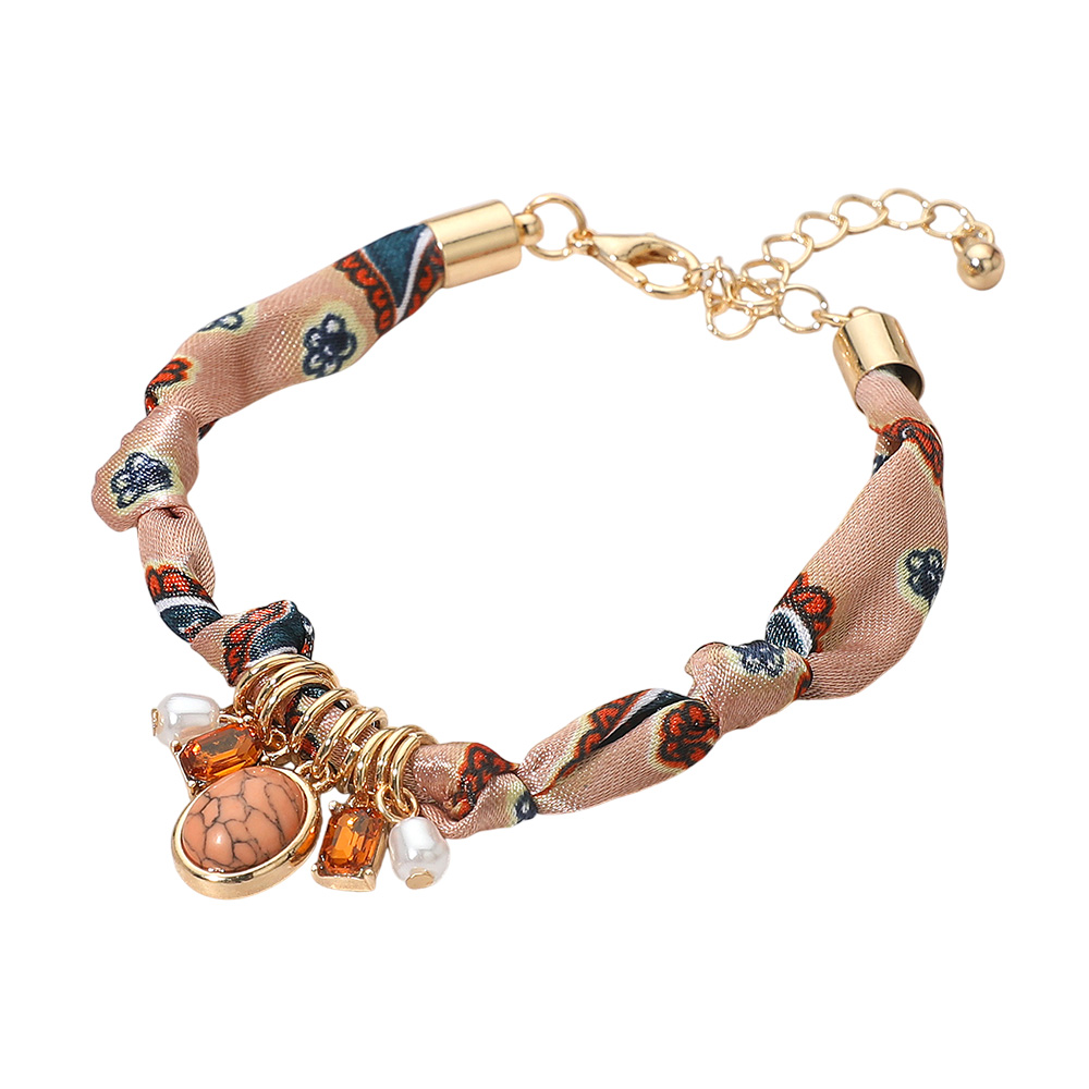 Stone Cluster Pearl Charm Boho Fabric Bracelet