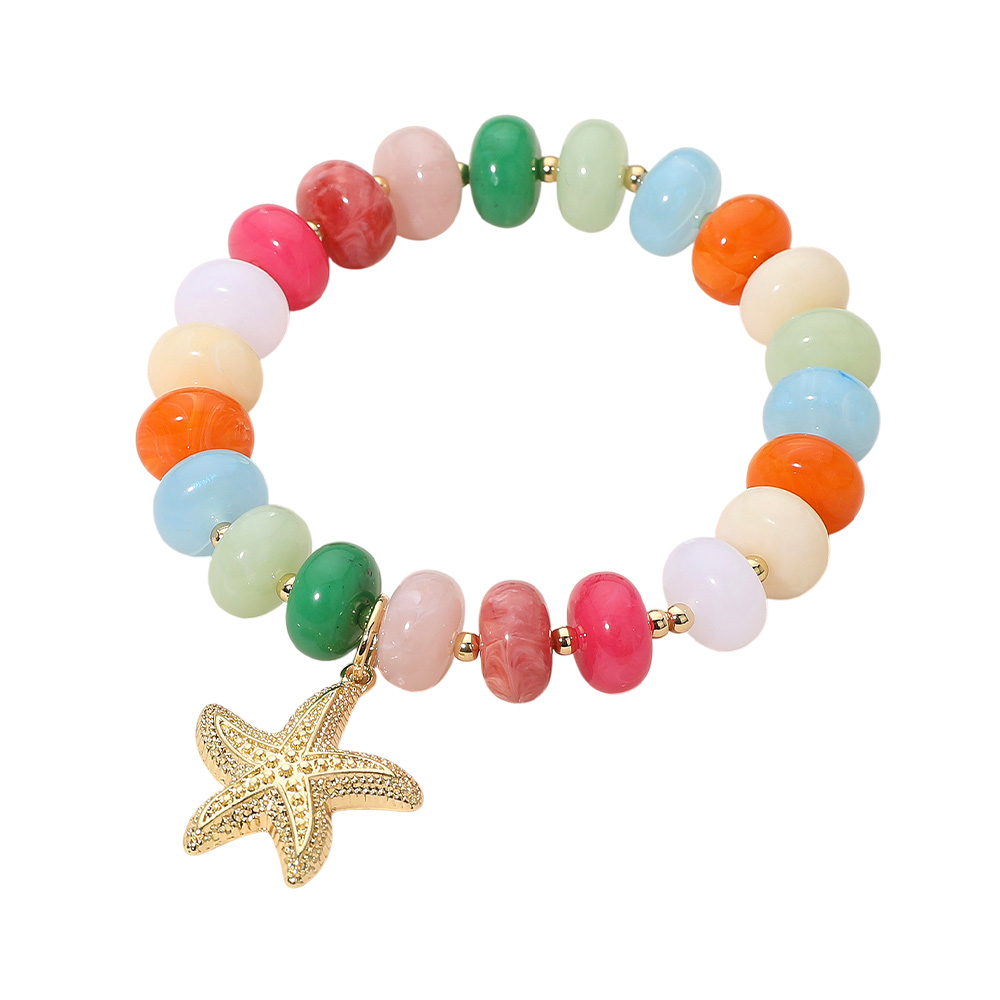 Textured Metal Starfish Charm Accent Resin Pebble Beaded Stretch Bracelet