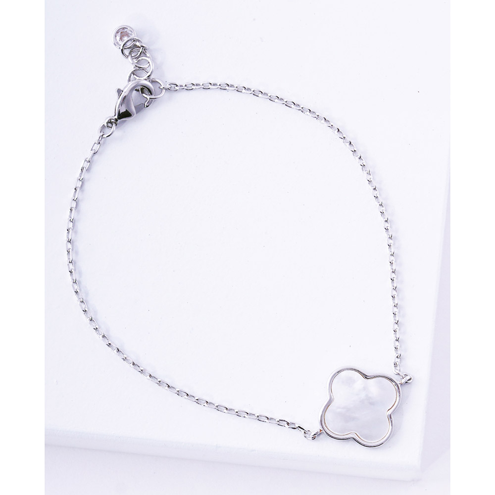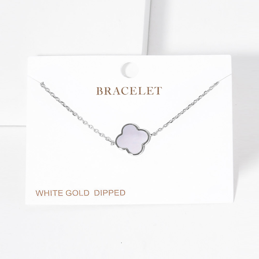 White Gold Dipped Mother of Pearl Quatrefoil Charm Bracelet