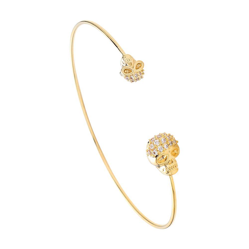 Details • Size : 0.35" H • Cuff • Edgy skull cuff bracelet featuring sparkling crystal embellishments for a striking look. A bold and stylish accessory perfect for adding personality to casual wear or completing statement outfits with a modern twist. • Lead and Nickel Compliant • Brass • CZ Cubic Zirconia