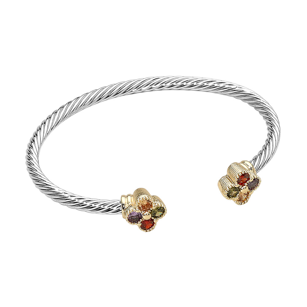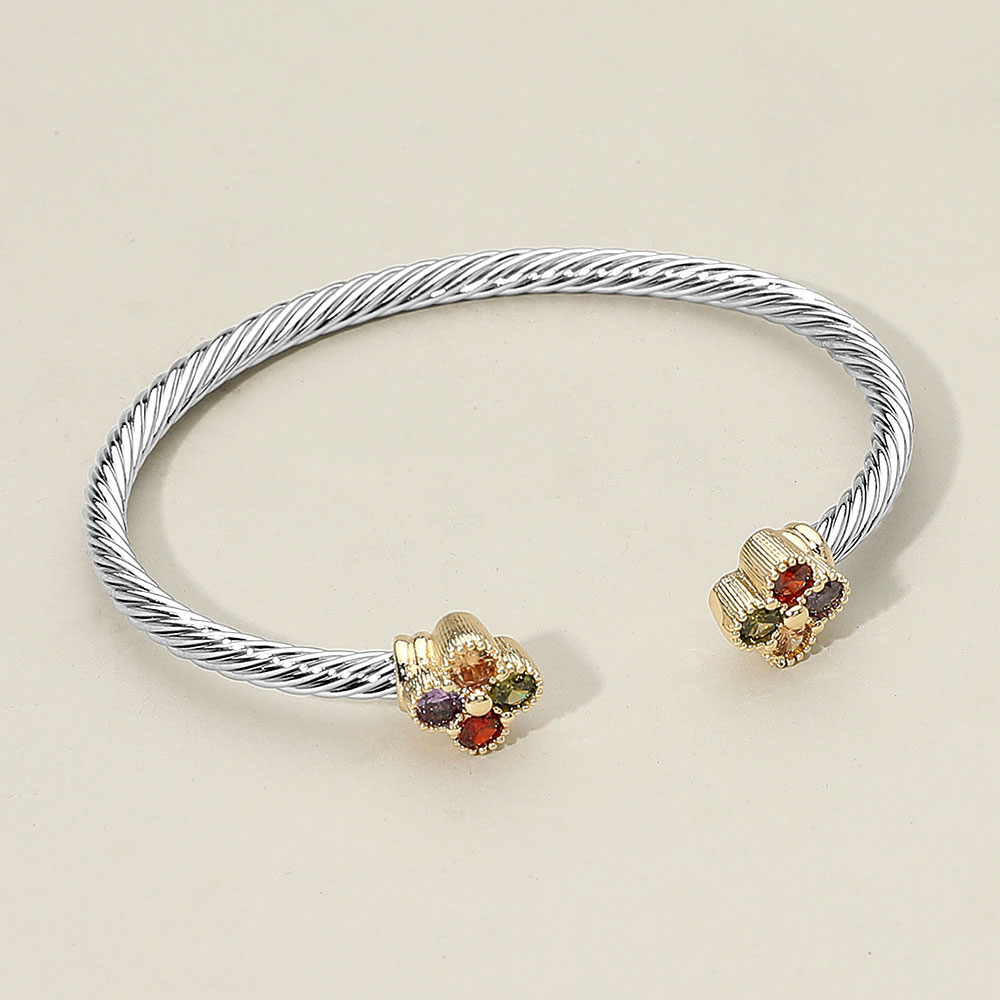 Details • Size : 0.4" H, 2.3" D • Cuff • Elevate your style with this twist cable cuff bracelet featuring clustered sparkling end accents for a refined, modern touch. Easy to slip on and perfect for layering or wearing solo, it adds a hint of elegance to everyday outfits and special looks with its sleek, eye-catching design. • CZ Cubic Zirconia
