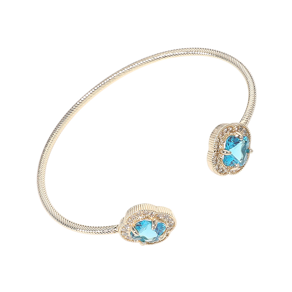 Details • Size : 0.7" H, 2.4" D • Cuff • Stylish open-cuff bracelet featuring two sparkling gem accents on each end, designed with a sleek band that adds a touch of sophistication. A refined accessory that enhances everyday outfits or special occasions with subtle shine and modern charm. • CZ Cubic Zirconia
