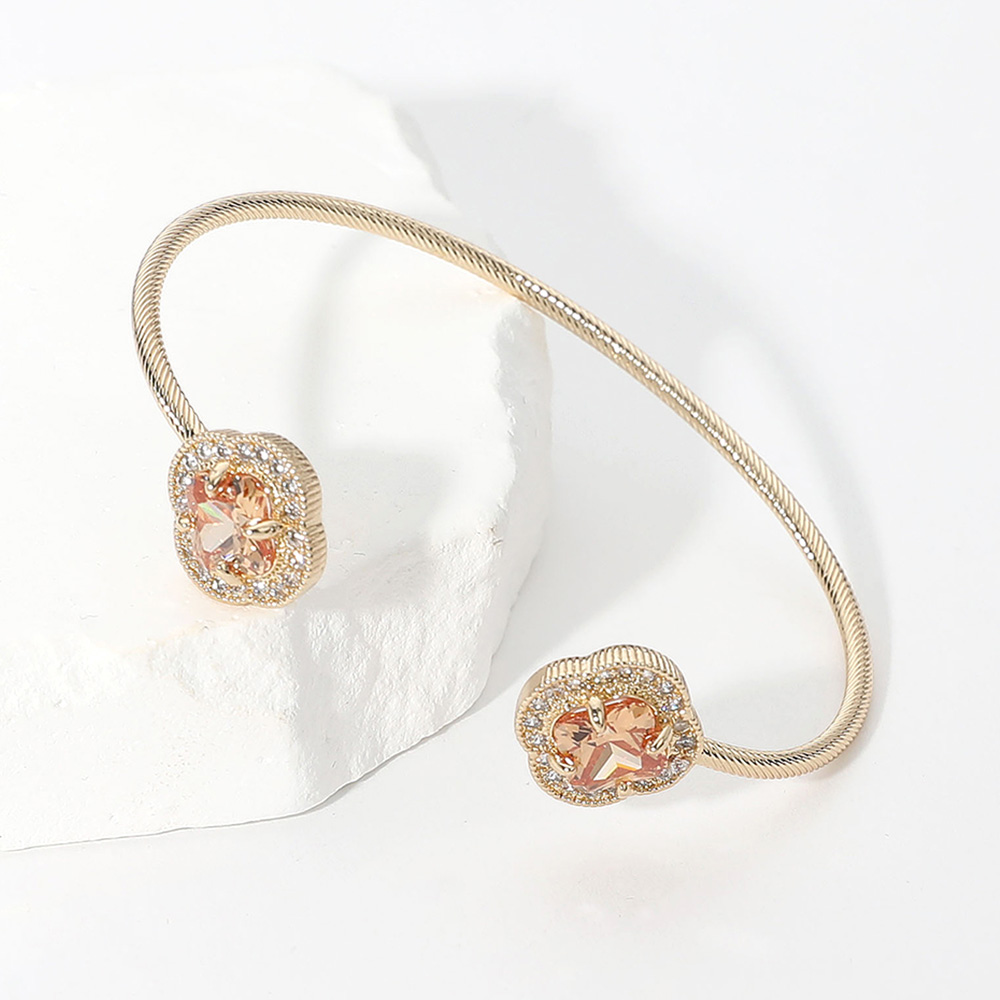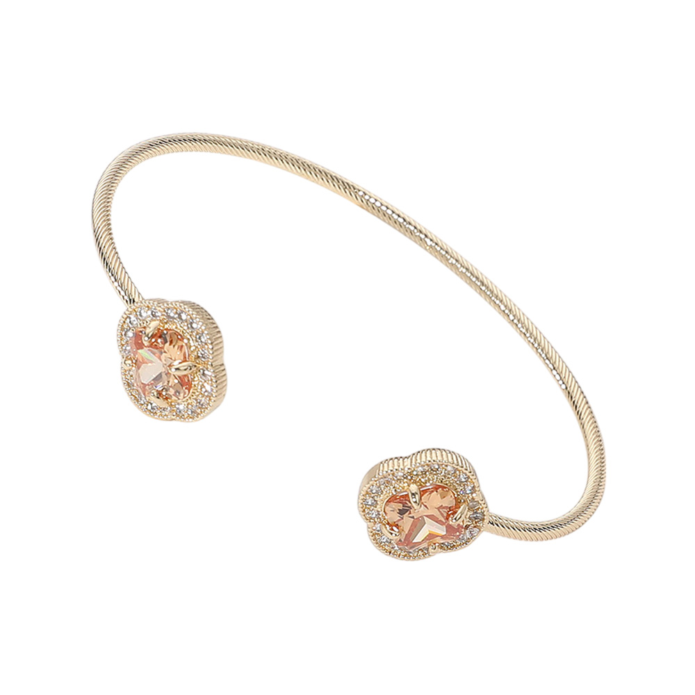 Details • Size : 0.7" H, 2.4" D • Cuff • Stylish open-cuff bracelet featuring two sparkling gem accents on each end, designed with a sleek band that adds a touch of sophistication. A refined accessory that enhances everyday outfits or special occasions with subtle shine and modern charm. • CZ Cubic Zirconia