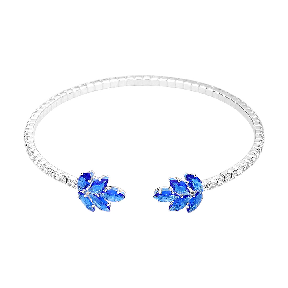 CZ Stone Embellished Marquise Stone Cluster Leaf Tip Cuff Bracelet