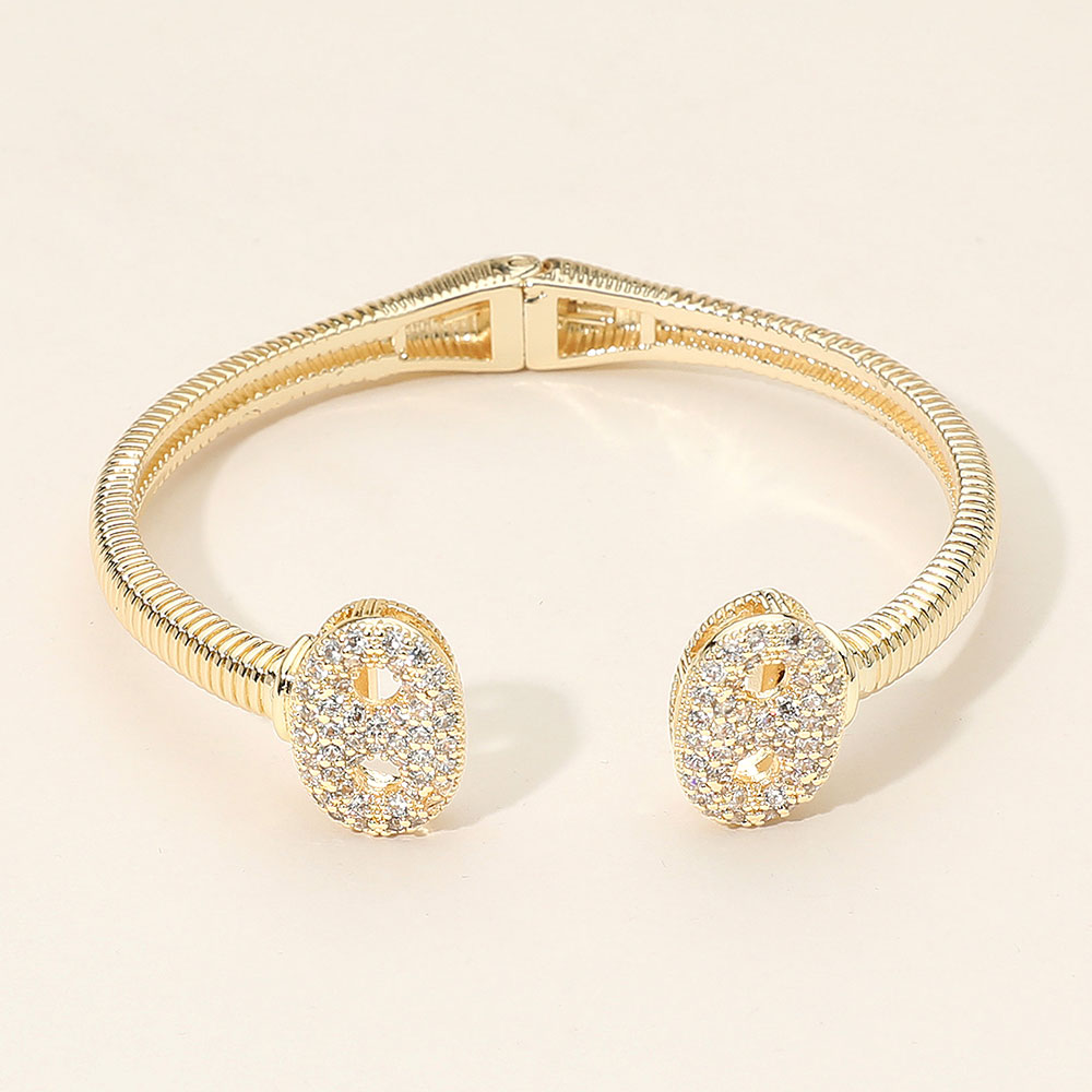 CZ Stone Paved Mariner Link Tip Hinged Bangle Bracelet