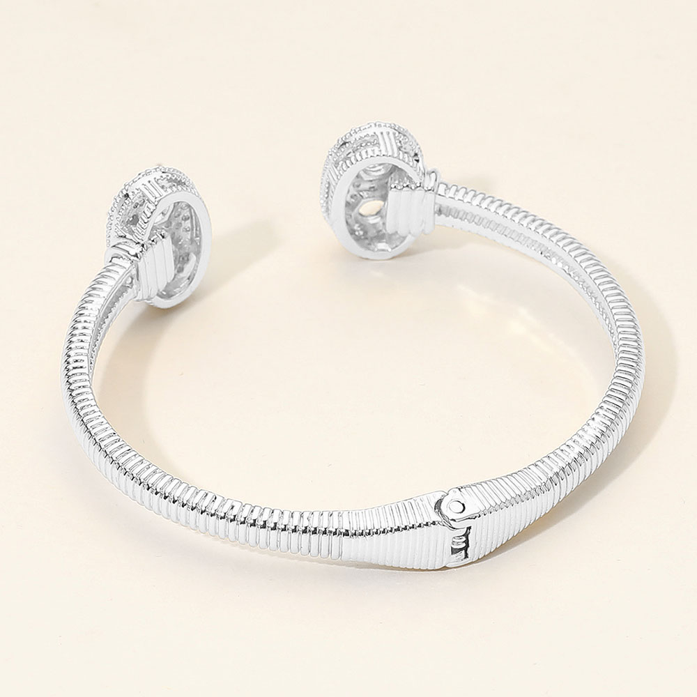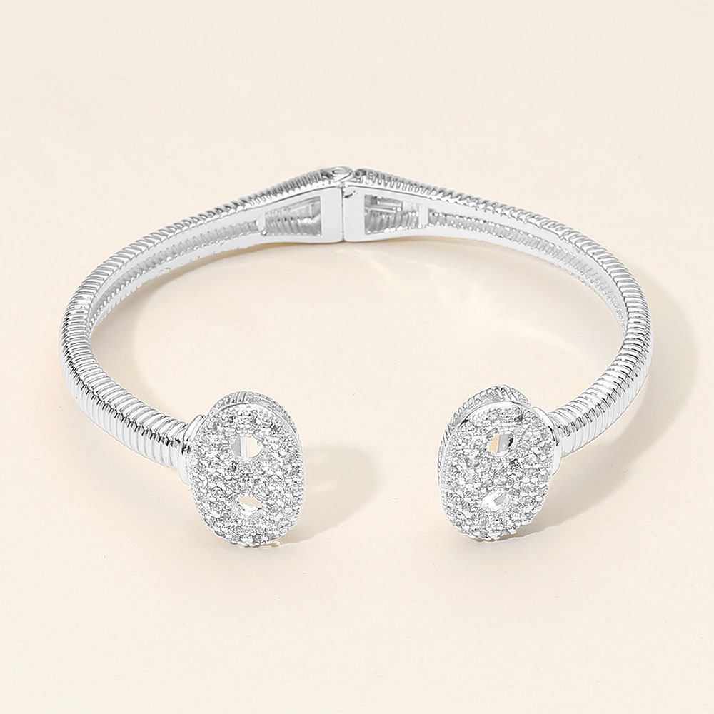 • This elegant pavĂ© cuff bracelet showcases twin oval ends encrusted with dazzling stones for refined sparkle. The hinged structure ensures a secure and comfortable fit, making it a sophisticated accessory that complements both chic daywear and evening elegance effortlessly.