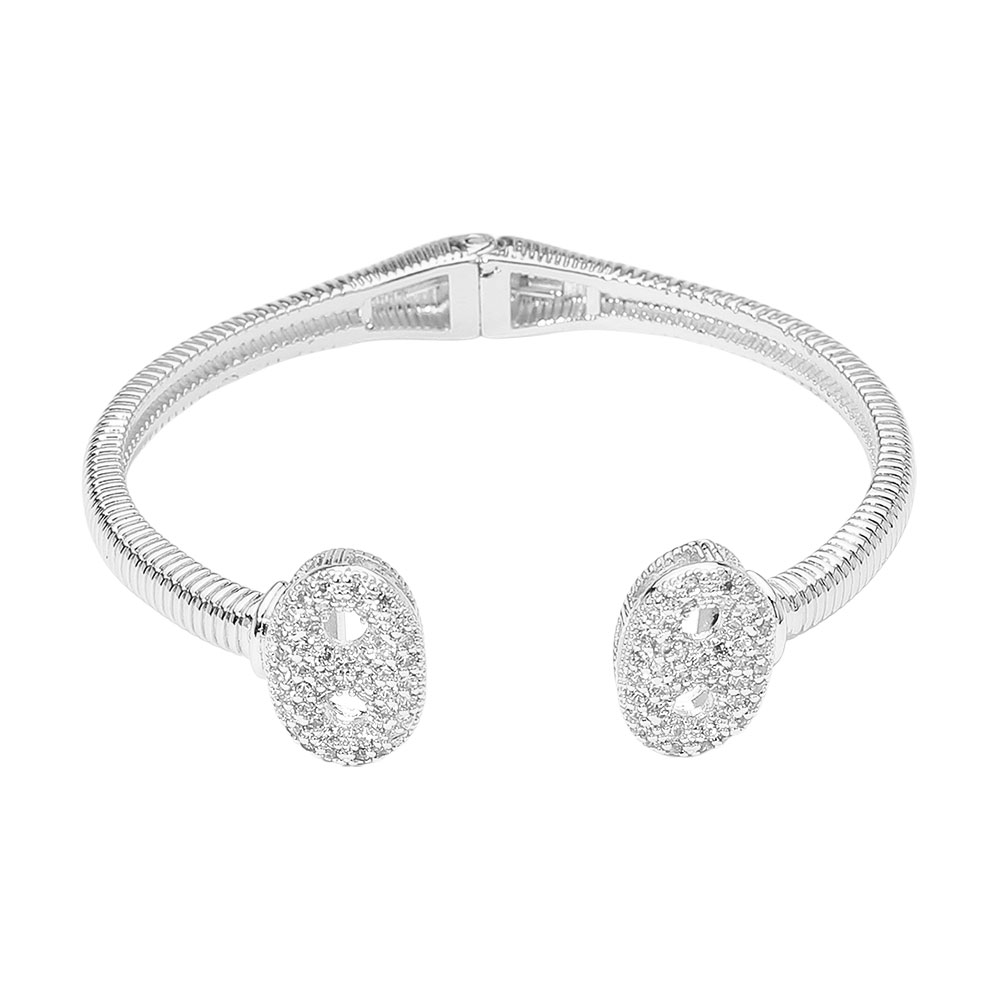 CZ Stone Paved Mariner Link Tip Hinged Bangle Bracelet