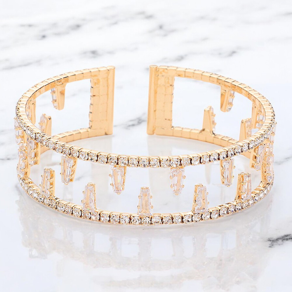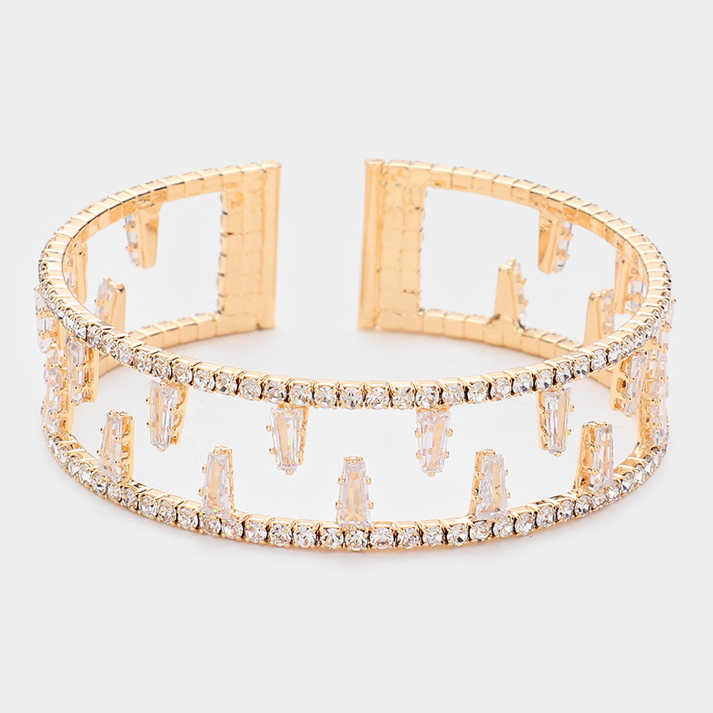 CZ Tapered Baguette Pointed Cuff Evening Bracelet