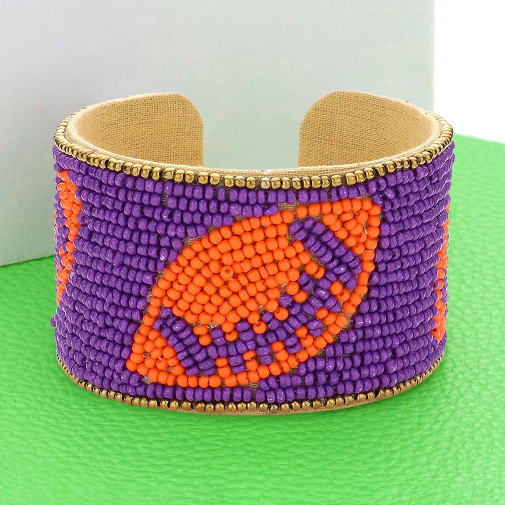 Game Day Seed Beaded Football Accented Cuff Bracelet