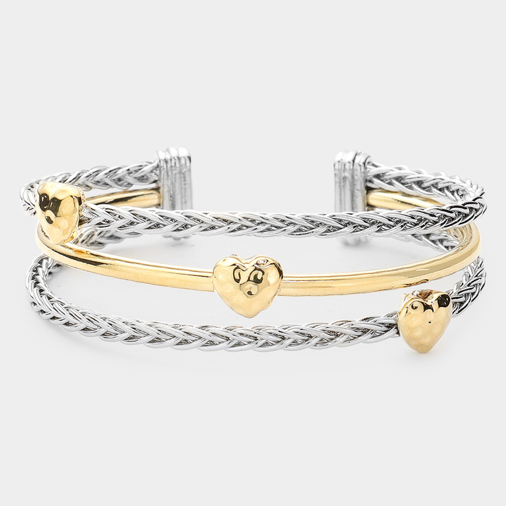 Round Stone Pointed Antique Metal Heart Dangle Earrings