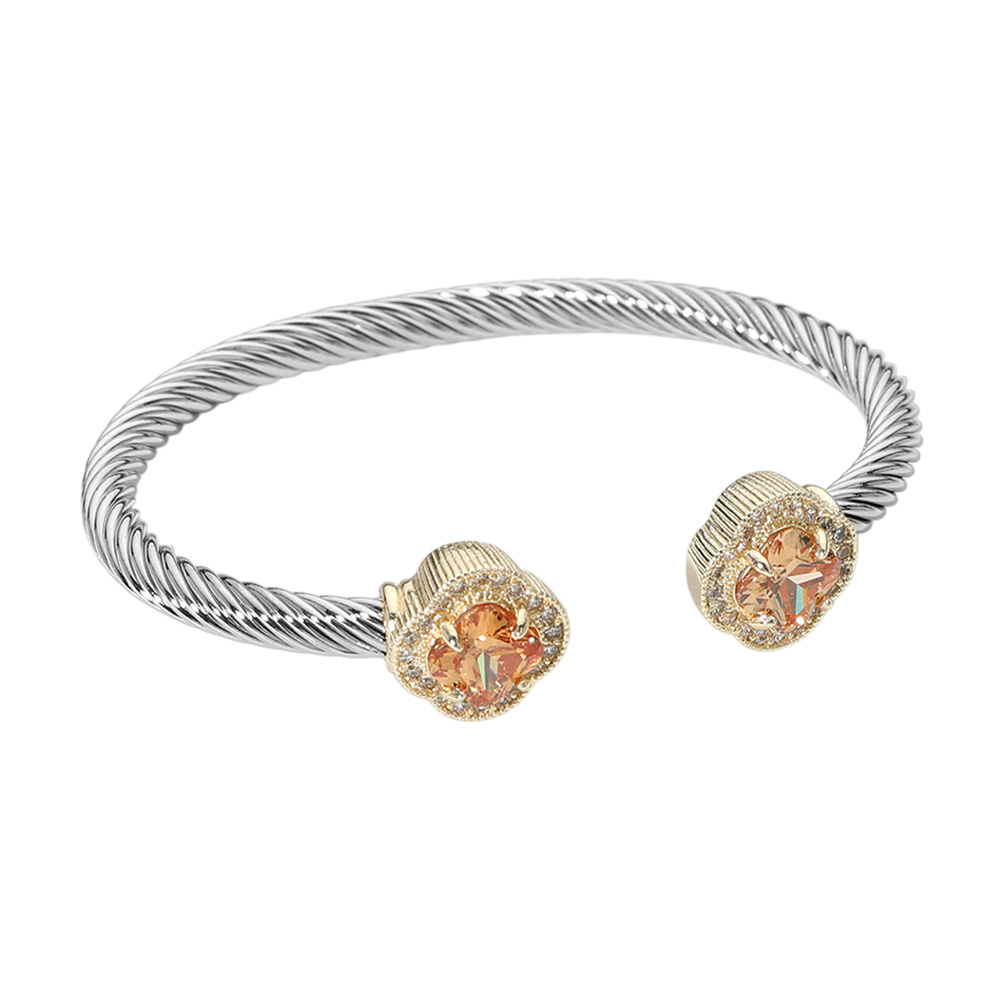 Quatrefoil CZ Stone Tip Twisted Cuff Bracelet
