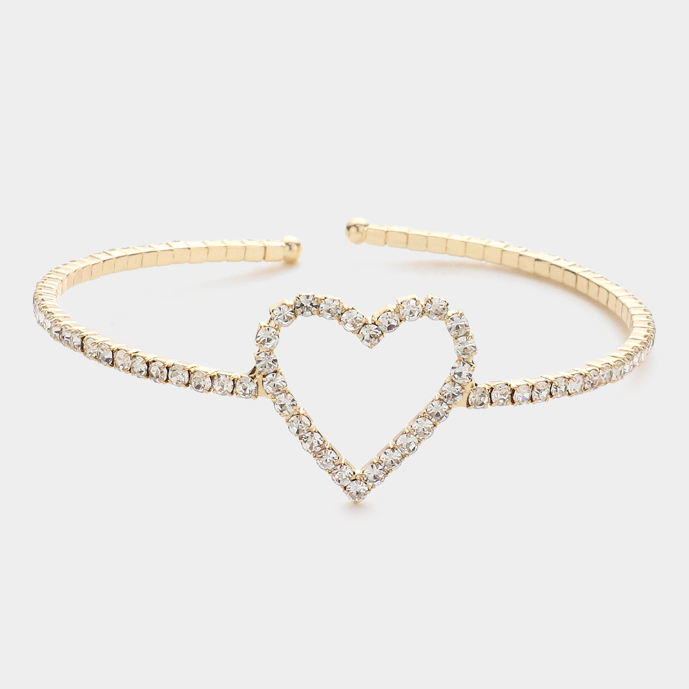 14K Gold Plated Two Tone CZ Stone Paved Heart Charm Chunky Chain Link Bracelet