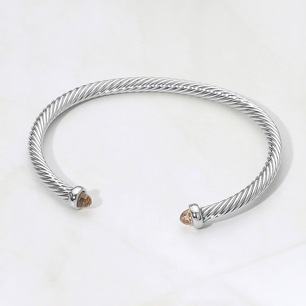 Stone Tip Twisted Cable Cuff Bracelet