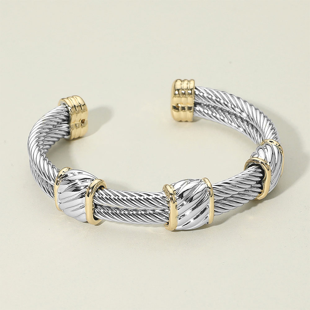 Details • Size : 0.6" H, 2.5" D • Cuff • Bold twisted cable cuff bracelet accented with textured bands for a refined finish. Open cuff design offers easy wear and versatile styling, making it a standout accessory for both casual and formal looks. A perfect balance of modern sophistication and timeless elegance for everyday wear or gifting.
