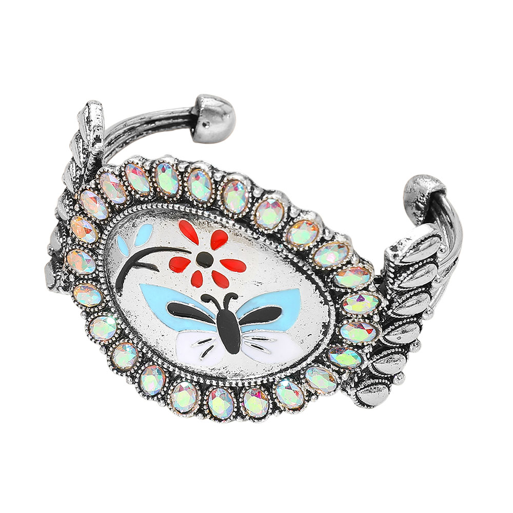 Western Oval Butterfly Flower Conch Cuff Bracelet