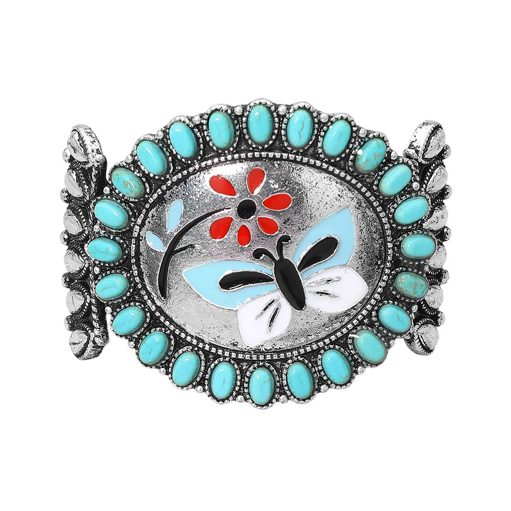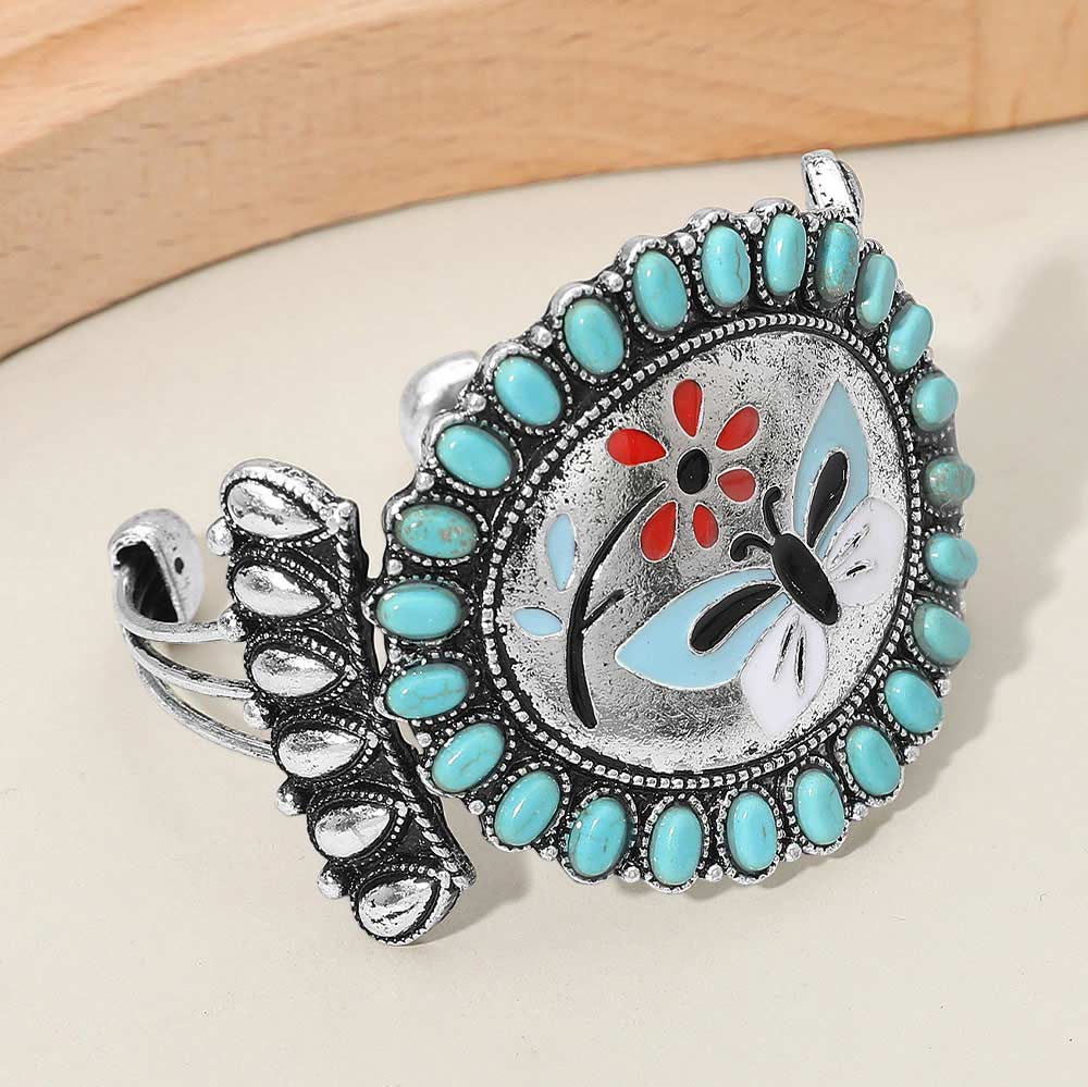 Western Oval Butterfly Flower Conch Cuff Bracelet