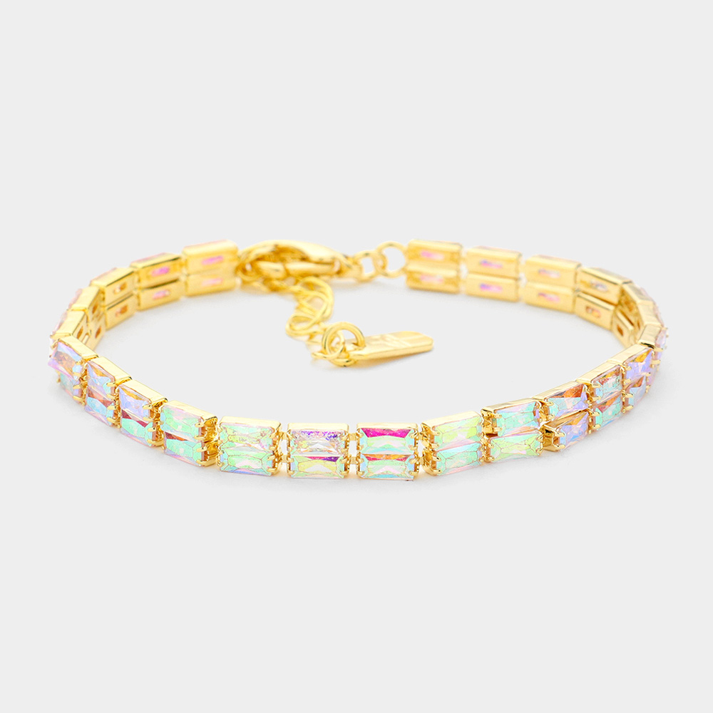 2Rows Rectangle Stone Cluster Evening Bracelet