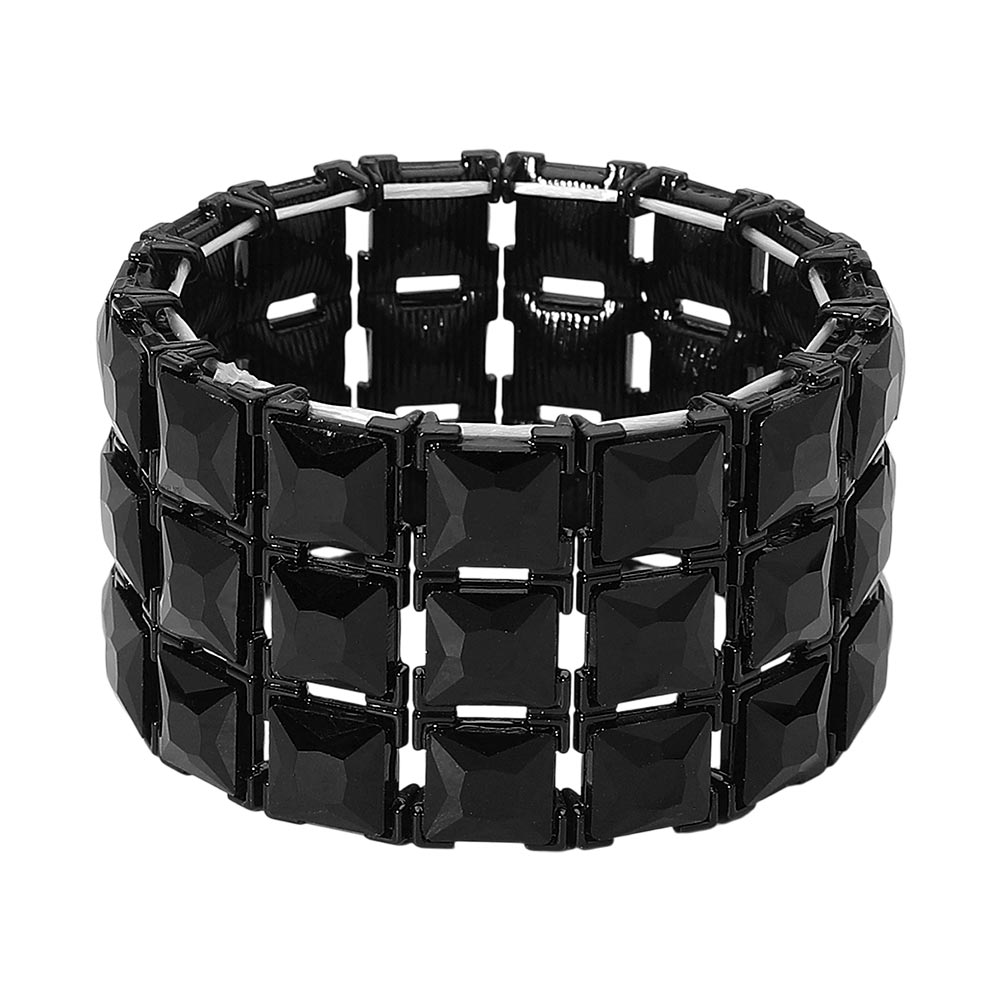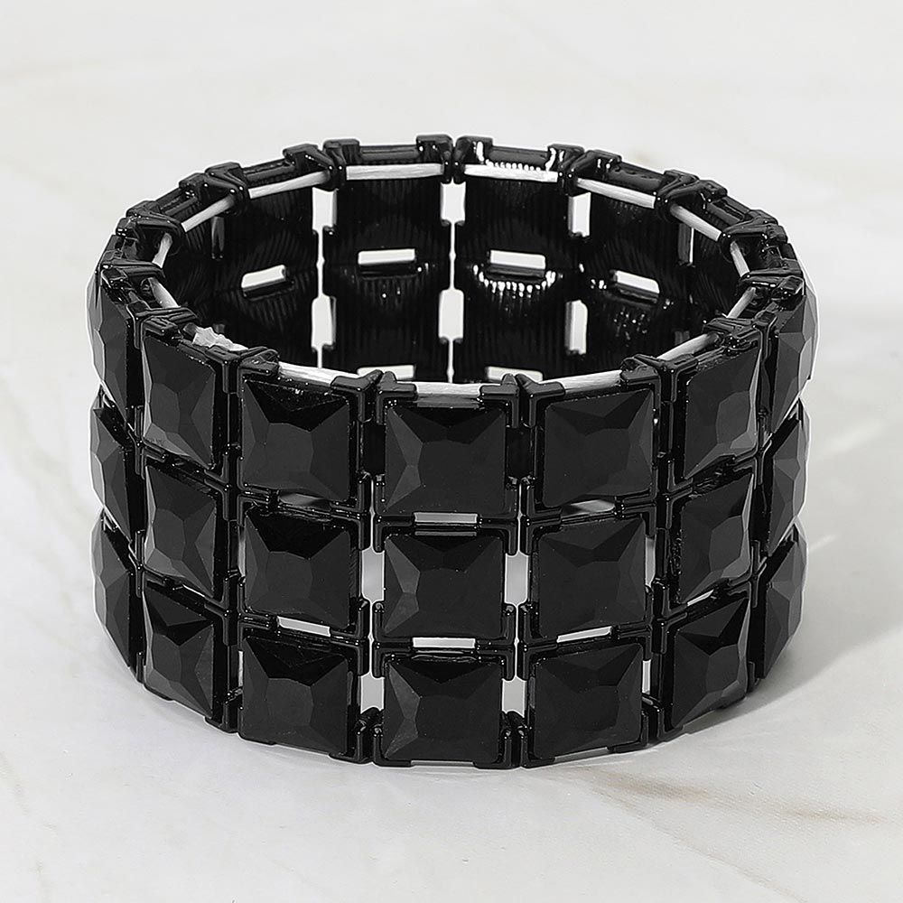 Details • Size : 1.5" H, 2.25" D • Stretchable • Make a striking statement with this square-cut crystal stretch bracelet designed for standout brilliance and effortless wear. Its bold, structured layout adds refined sparkle to evening looks or event ensembles, offering a glamorous finishing touch that catches every light beautifully.