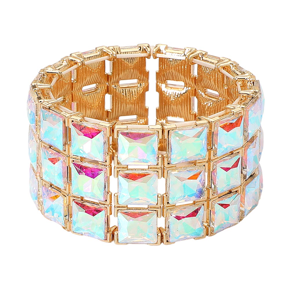 Details • Size : 1.5" H, 2.25" D • Stretchable • Make a striking statement with this square-cut crystal stretch bracelet designed for standout brilliance and effortless wear. Its bold, structured layout adds refined sparkle to evening looks or event ensembles, offering a glamorous finishing touch that catches every light beautifully.