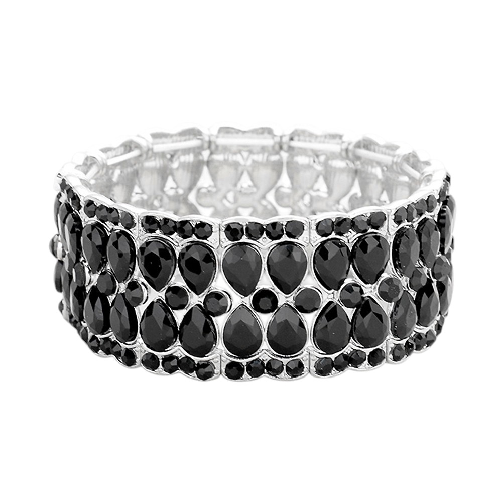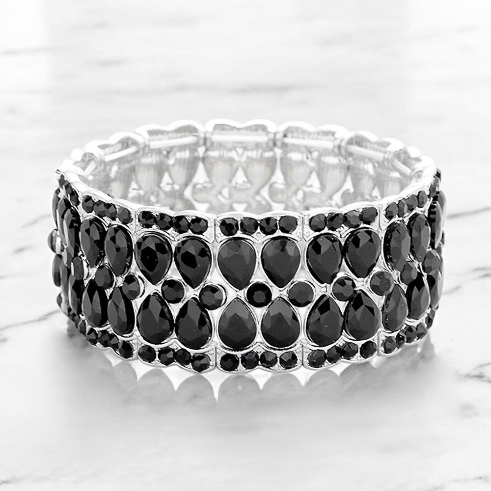 Bubble Trim Crystal Teardrop Evening Stretch Bracelet