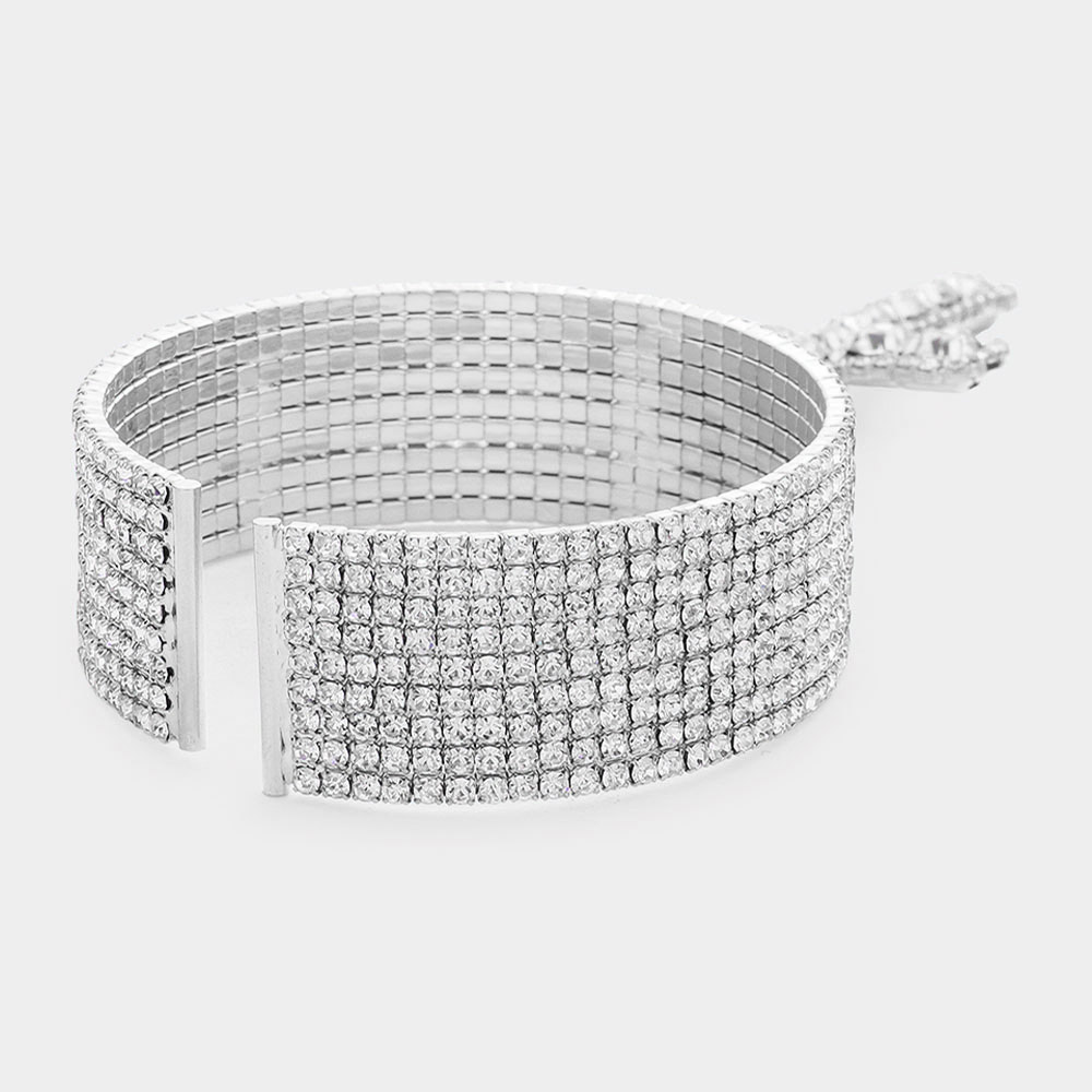 Rhodium Plated CZ Stone Paved Hinged Bangle Evening Bracelet