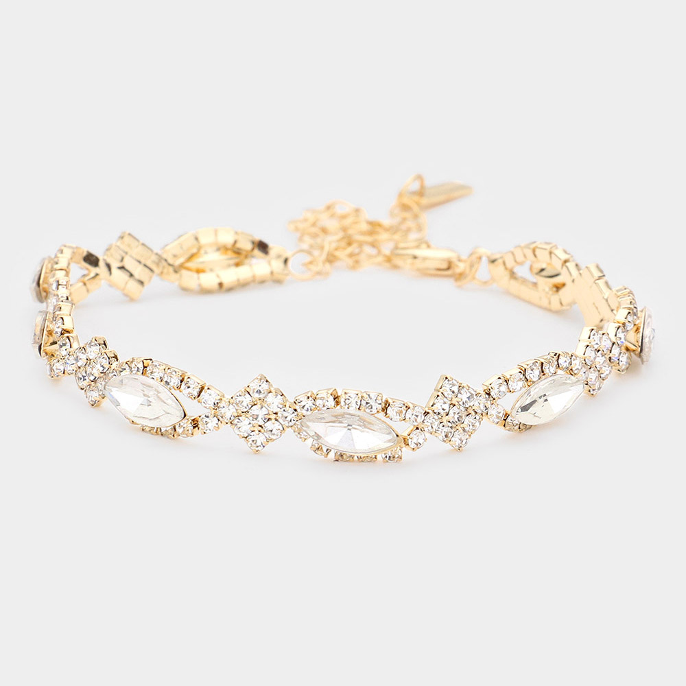 Glass Crystal Oval Stone Cluster Stretch Bracelet