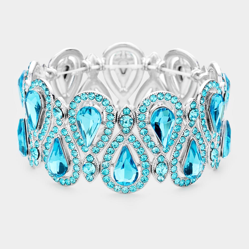 Crystal Glass Teardrop Evening Stretch Bracelet