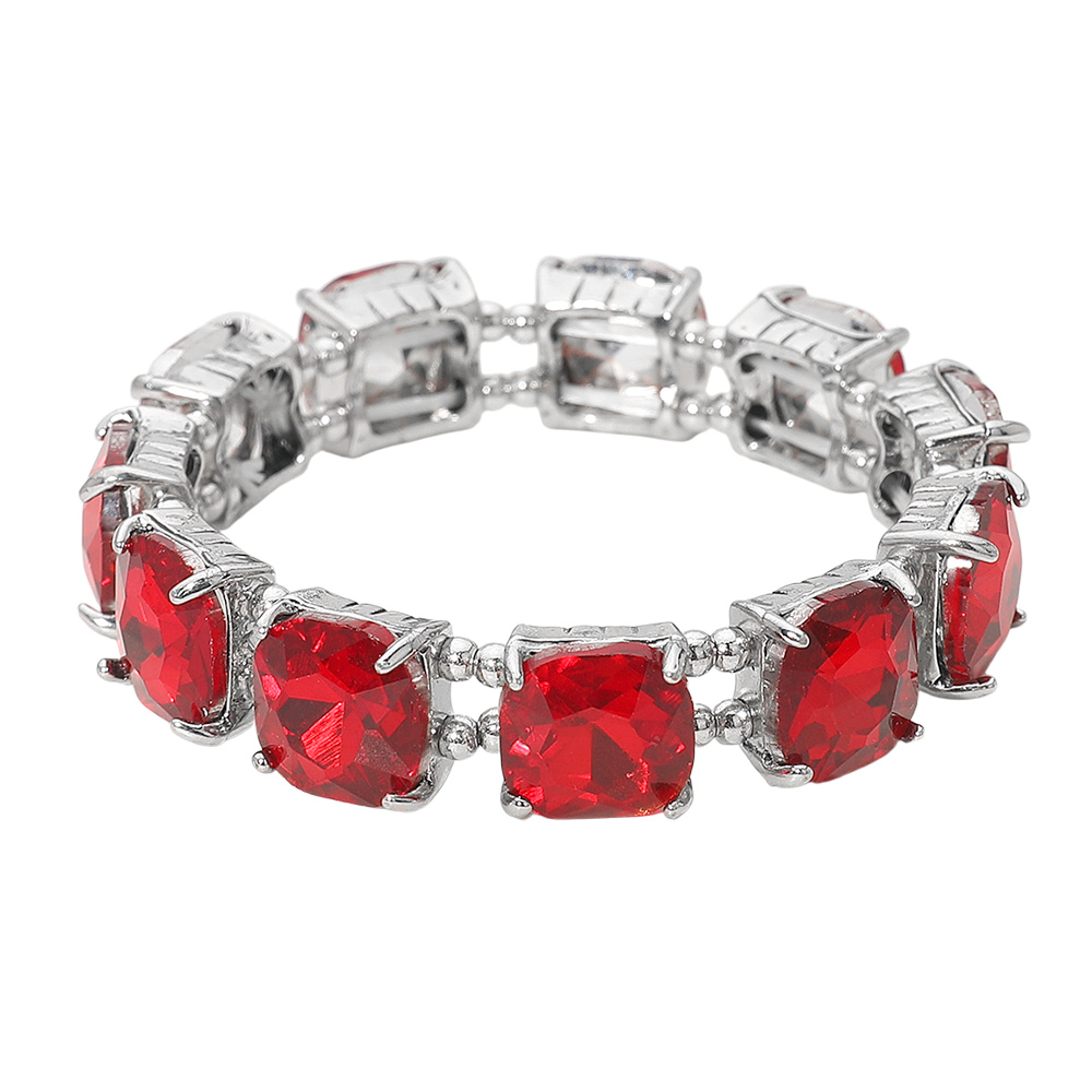 American USA Cushion Square Stone Stretch Evening Bracelet
