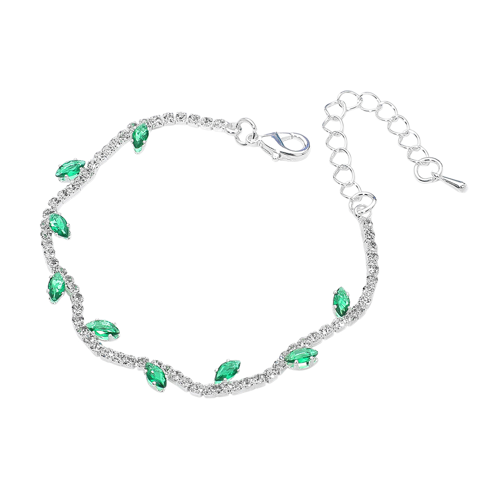 • Graceful tennis bracelet featuring marquise-shaped cluster vine accents along a slim, curved cz band. The delicate structure and adjustable clasp create a refined silhouette that complements any elegant or formal style, adding subtle brilliance to wristwear collections.