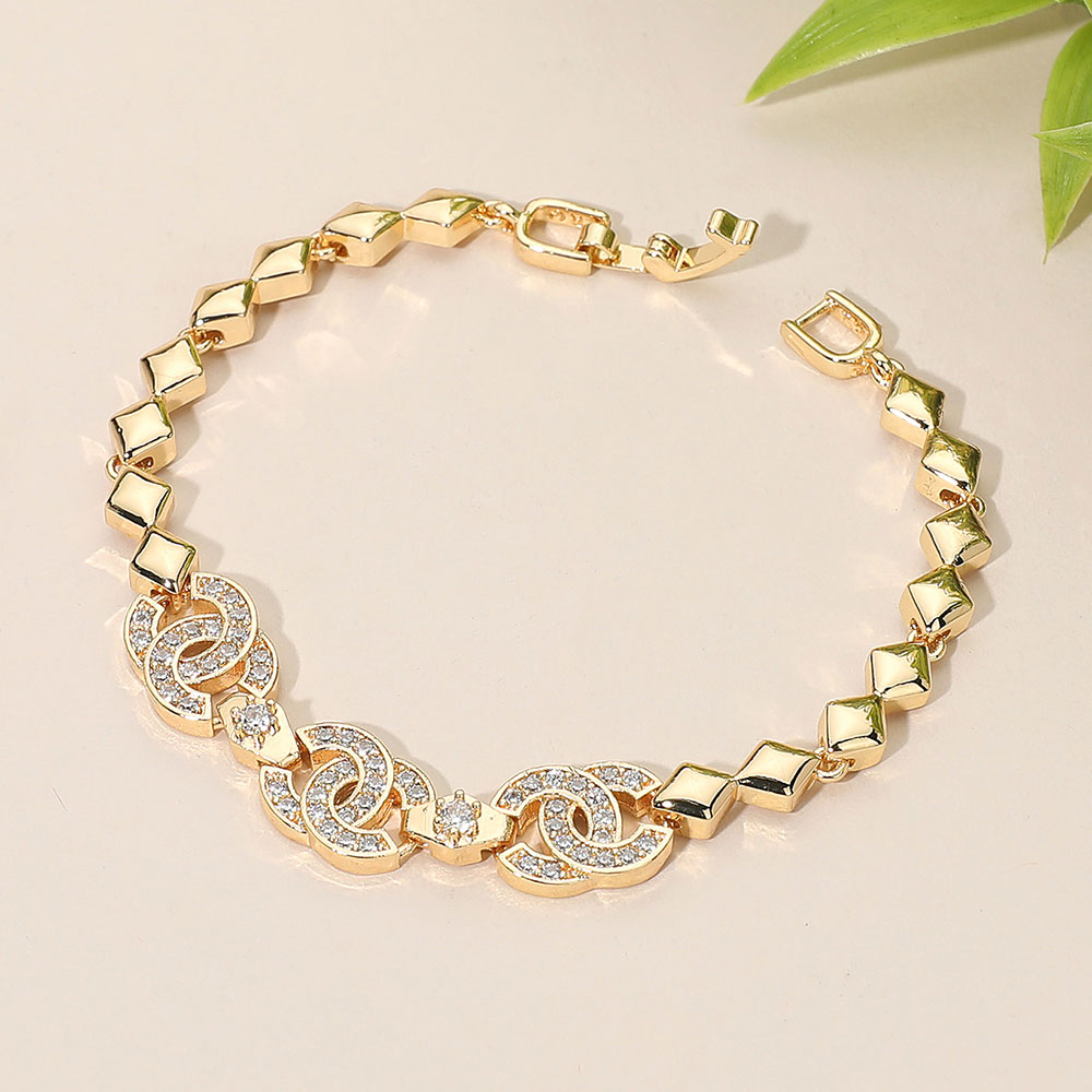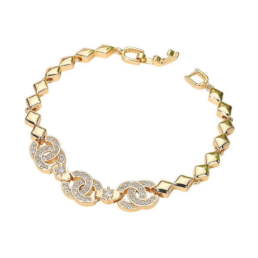 Details • Size : 0.4" H, 7.25" L • Fold Over Closure • This interlocking crystal bracelet showcases elegant geometric links and dazzling crystal accents, creating a refined and modern statement piece. Perfect for both everyday wear and formal occasions, it combines timeless sophistication with a touch of radiant brilliance. • Brass • CZ Cubic Zirconia