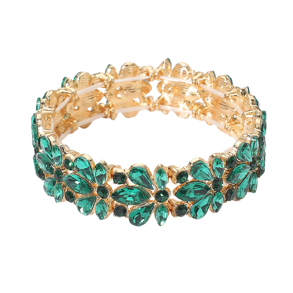 Pear Crystal Floral Rhinestone Stretch Evening Bracelet