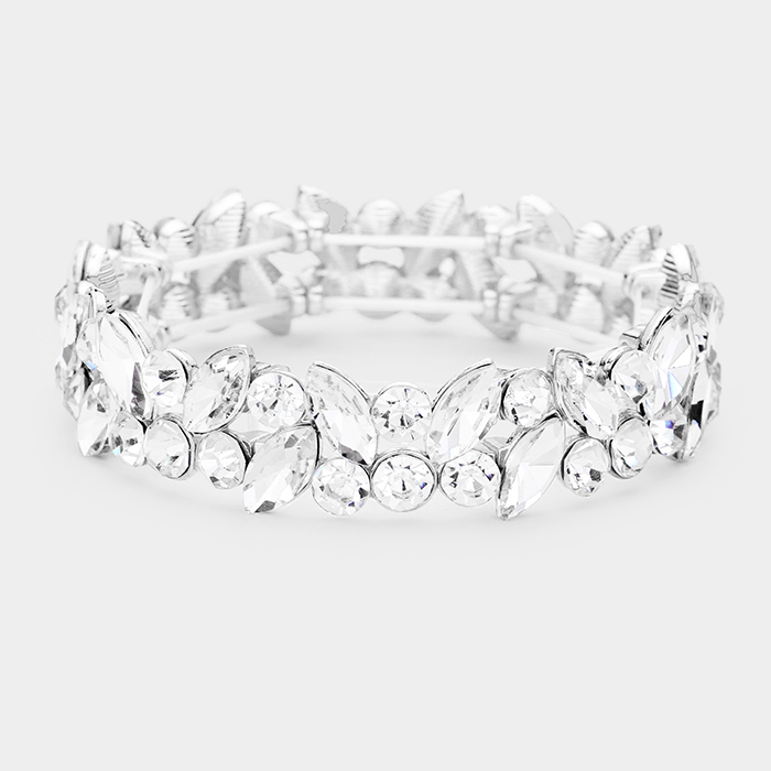Glass Crystal Marquise Stone Cluster Stretch Bracelet