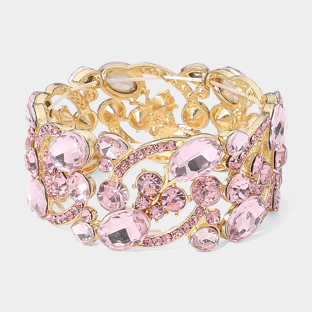 Glass Crystal Oval Butterfly Stretch Evening Bracelets