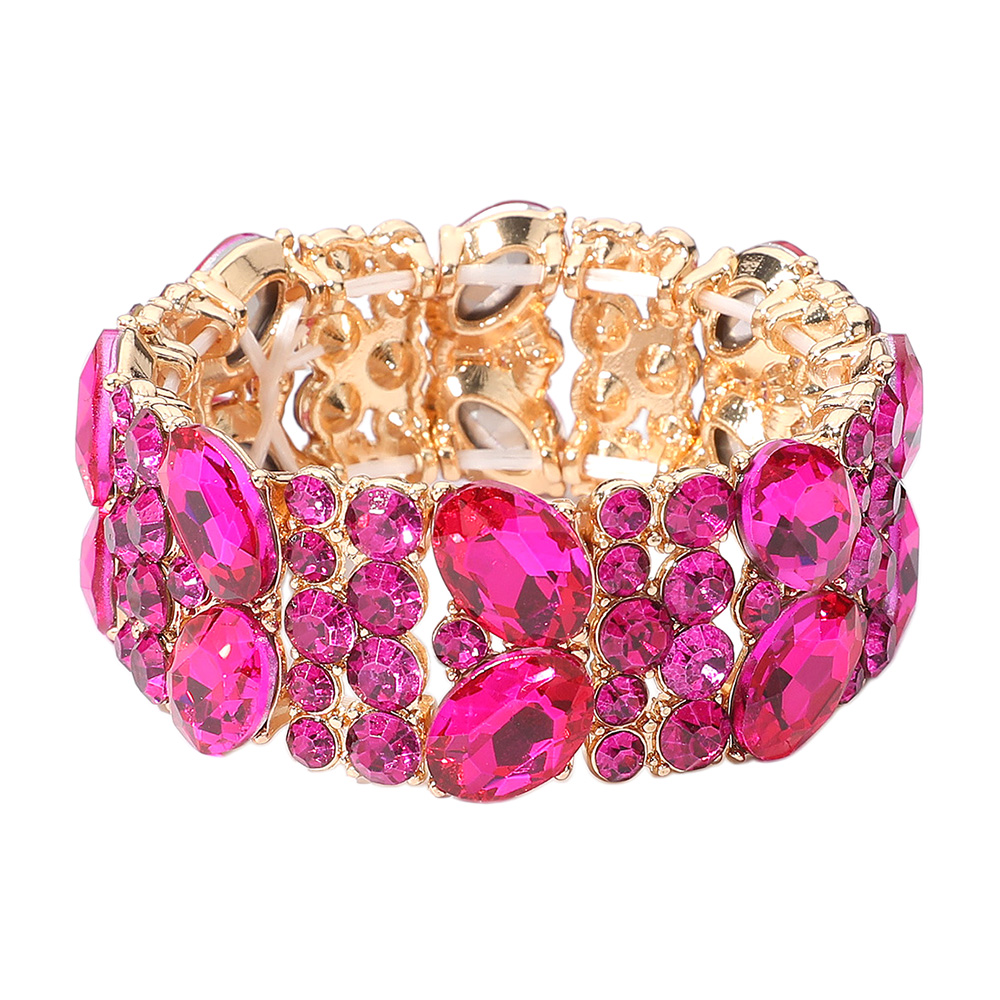 Glass Crystal Oval Round Stretch Evening Bracelet