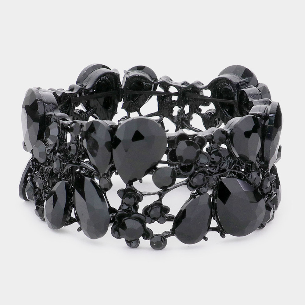 Teardrop Glass Stone Cluster Evening Stretch Bracelet