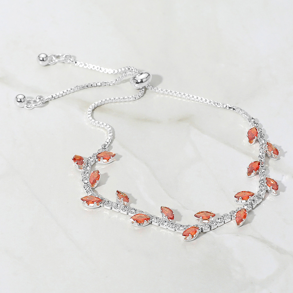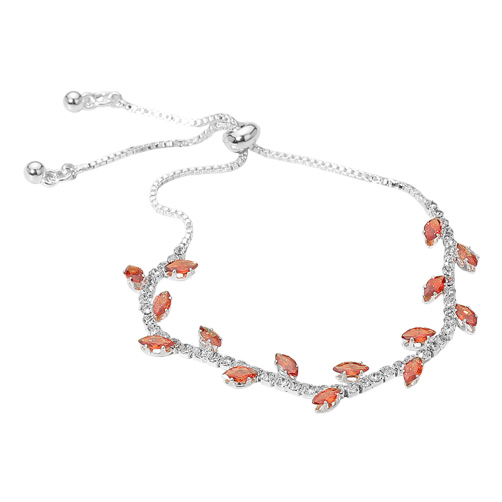 Marquise CZ Stone Cluster Pointed Leaf Vine Adjustable Cinch Pull Tie Bracelet