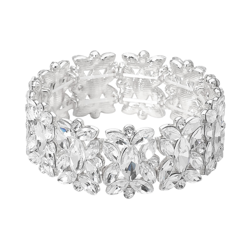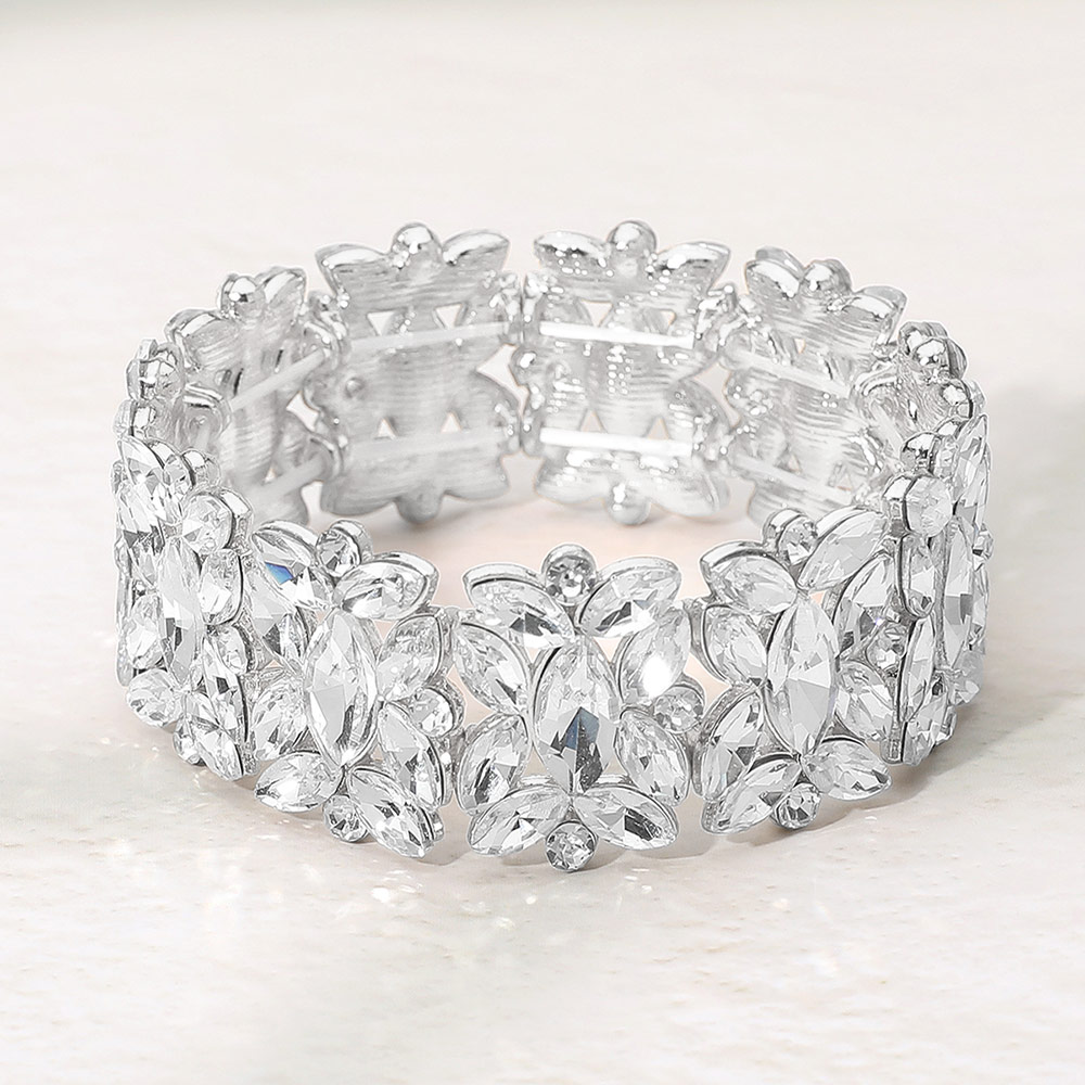 • A sparkling stretch bracelet with marquise floral crystal detailing designed for effortless elegance. Comfortable to slip on and perfect for parties, weddings, and formal events, adding radiant shine and a refined finishing touch to both evening and special-occasion looks.