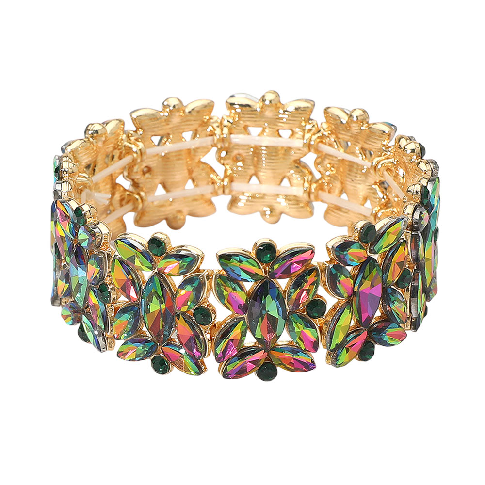 Marquise Floral Oval Crystal Cluster Stretch Evening Bracelet
