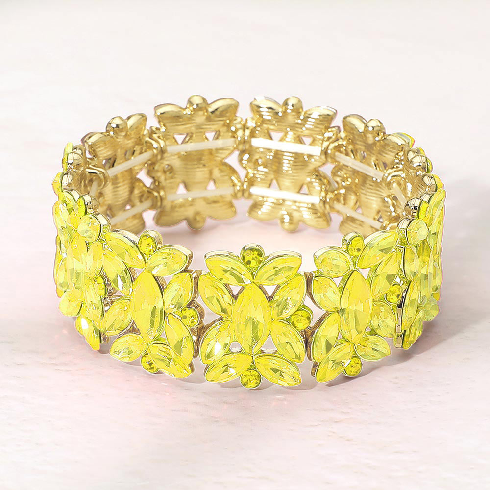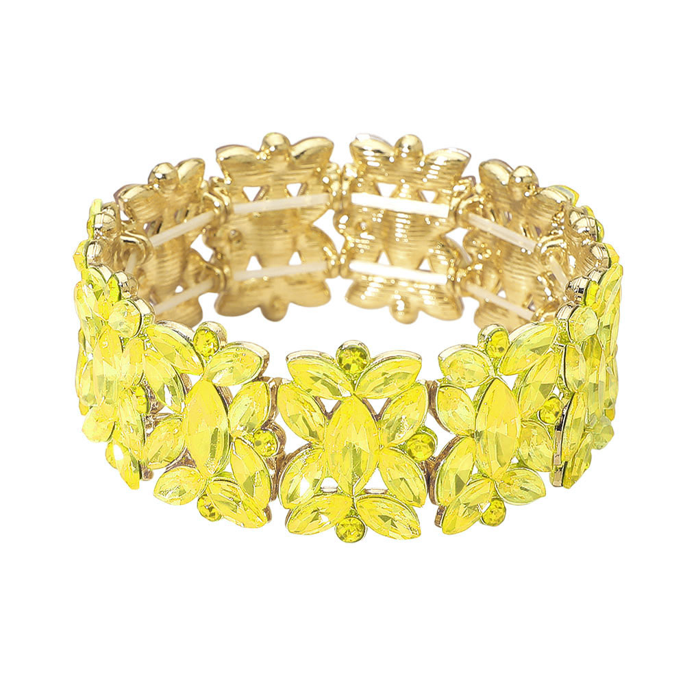 • A sparkling stretch bracelet with marquise floral crystal detailing designed for effortless elegance. Comfortable to slip on and perfect for parties, weddings, and formal events, adding radiant shine and a refined finishing touch to both evening and special-occasion looks.