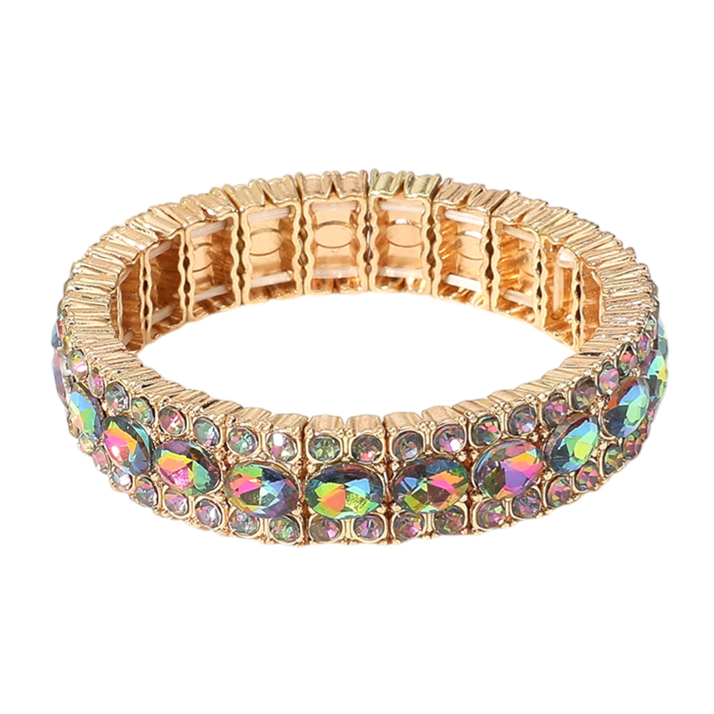 Oval Round Glass Stone Cluster Beaded Stretch Evening Bracelet
