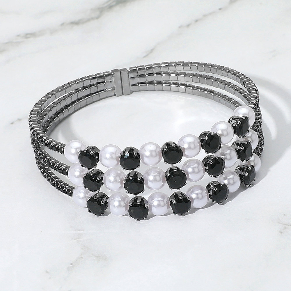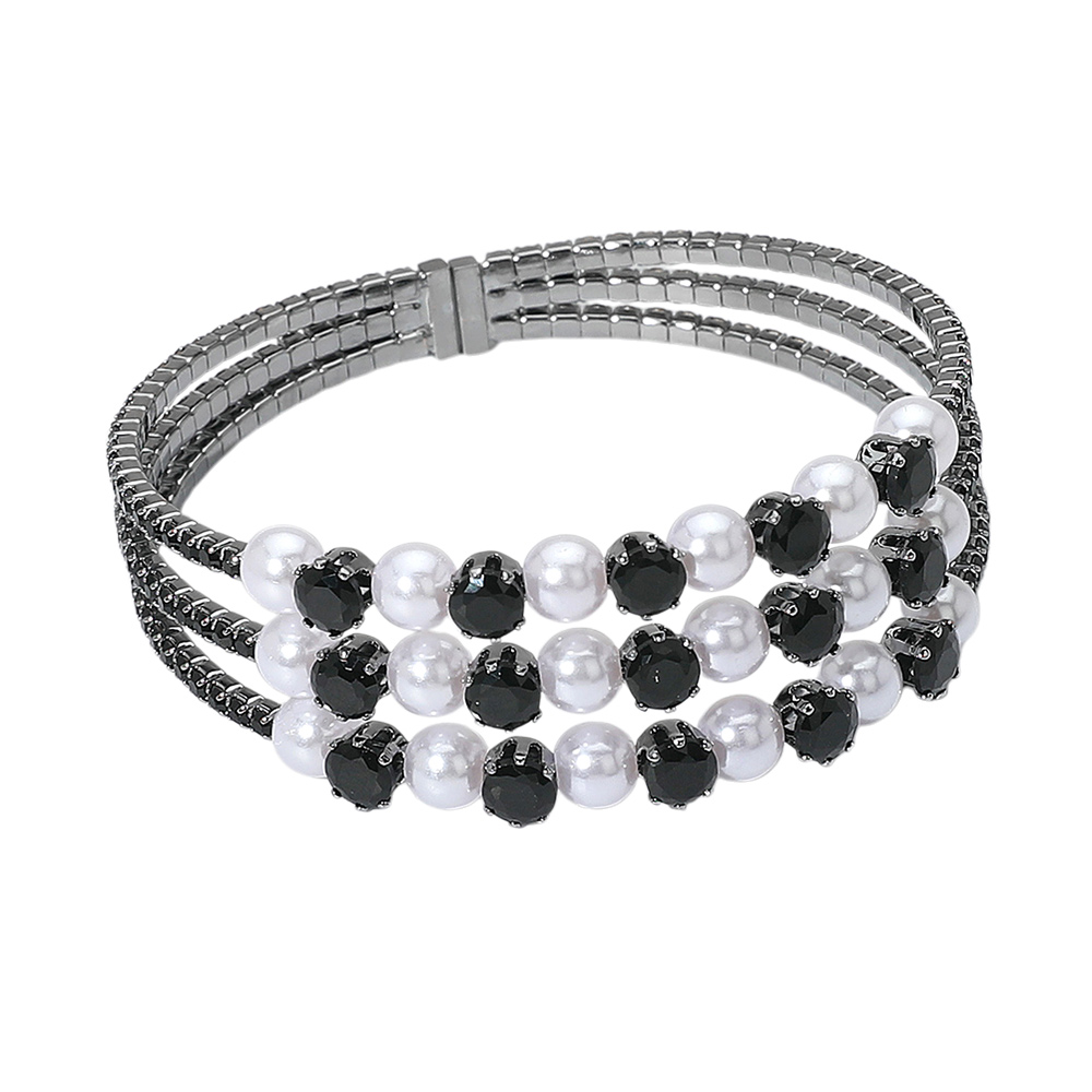 Details • Size : 0.75" H • Adjustable • Chic adjustable bangle bracelet featuring a trio of strands with pearl and crystal accents. A perfect accessory for formal events, parties, or polished everyday wear. • Lead and Nickel Compliant