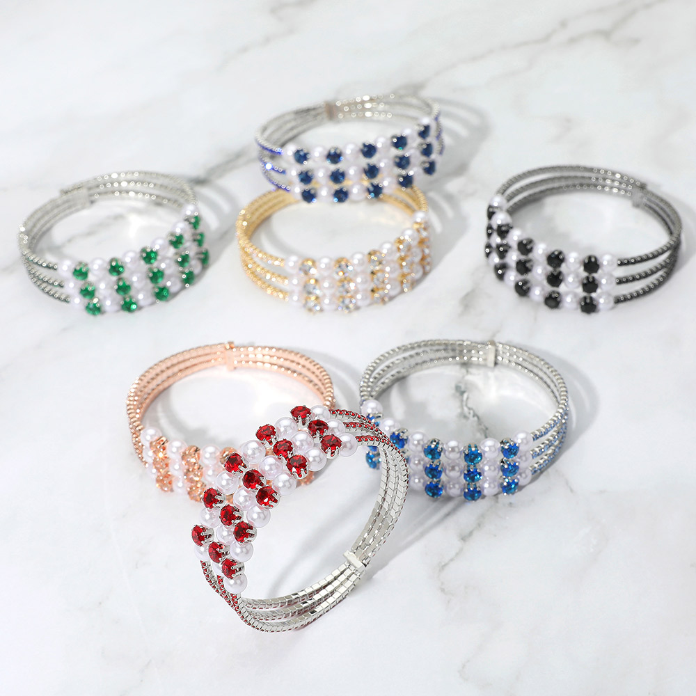 Pearl Stone Bezel Point Rhinestone Paved Split Adjustable Evening Bracelet