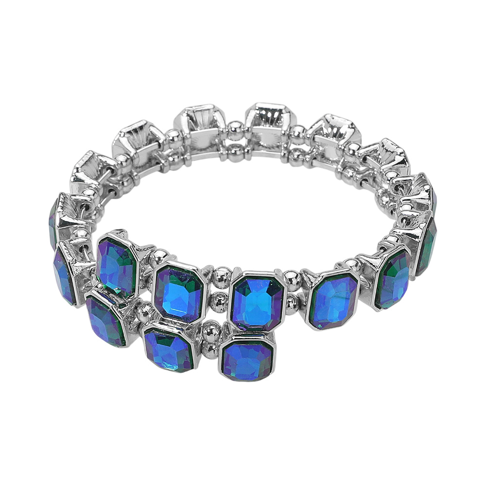 Glass Crystal Oval Round Stretch Evening Bracelet